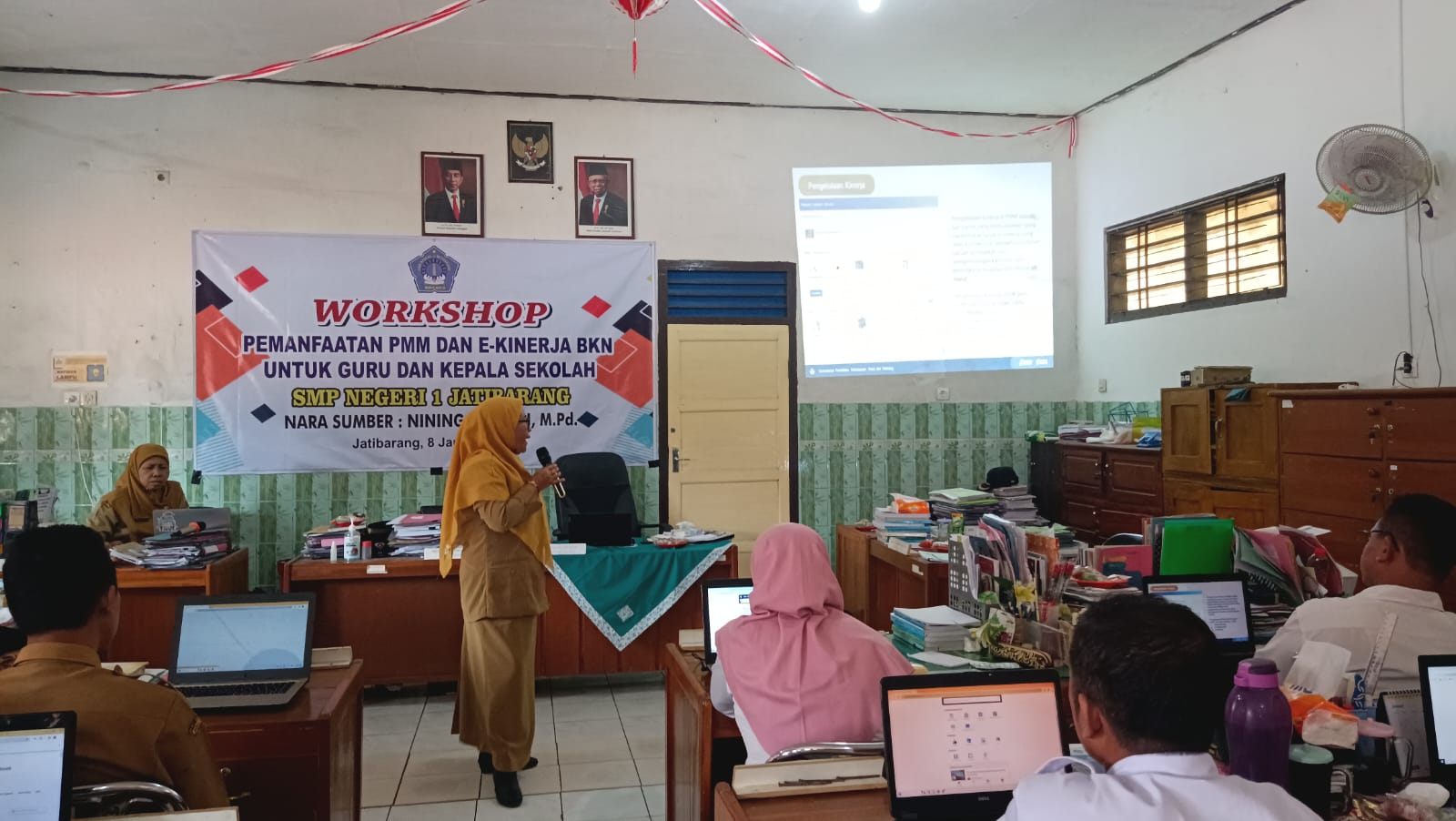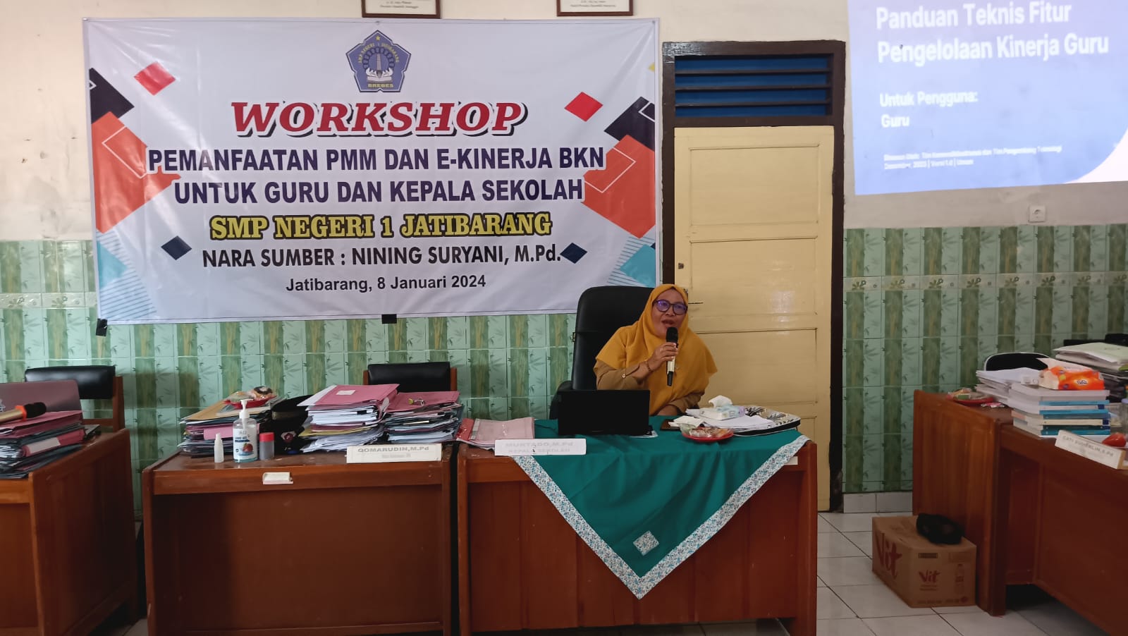 Dengan adanya kebijakan tersebut, SMP Negeri 1 Jatibarang-Brebes pada hari Senin, 8 Januari 2024 mengadakan Workshop Pemanfaatan PMM dan E-Kinerja BKN untuk Guru dan Kepala Sekolah dengan Narasumber Ibu Ninig Suryani, M.Pd dari Dinas Pendidikan Pemuda dan Olahraga Kabupaten Brebes.