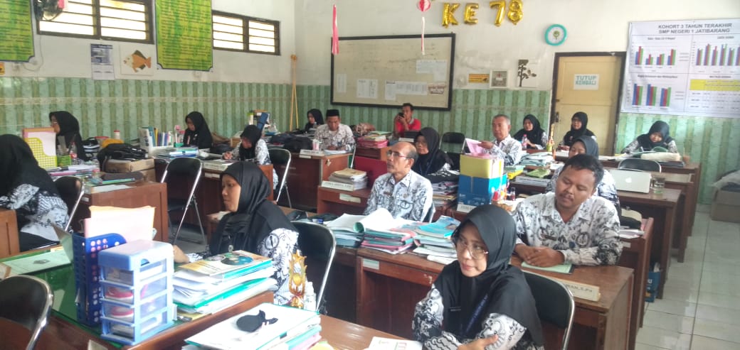 Kamis, 18 Januari 2024. Dalam rangka meningkatkan mutu pendidikan di kabupaten Brebes, khususnya di kecamatan Jatibarang, SMP negeri 1 Jatibarang Brebes selalu berupaya dan berinovasi, dengan meluncurkan program-program unggulan diantaranya meningkatkan kinerja pendidiknya, salah satu program nya yaitu melaksanakan lesson study untuk setiap gurunya. Tujuannya selain mengevaluasi KBM (Kegiatan Belajar Mengajar) di kelas juga menemukan ide-ide pembelajaran yg kreatif dan inovatif.